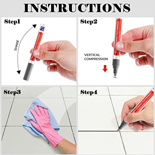 【Prestare Attenzione】 Nessuna soluzione liquida per piastrelle e malta funziona bene, ma Pennarello per la Riparazione può essere utilizzata per decorare le aree che devono essere riparate. Agitare energicamente la penna prima dell'uso, ricordarsi di chiudere il cappuccio dopo l'uso per evitare che l'inchiostro evapori.