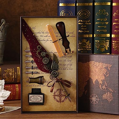 Penne Piuma Vintage con Ali Meccaniche, Penna Della Piuma di Calligrafia Penna Stilografica Antica, Inchiostro e Scatola Regalo, Regalo Esecutivo e Arredamento da Scrivania Antico