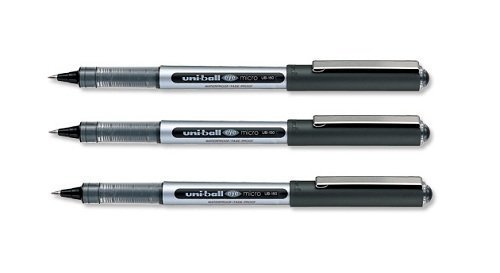 3 x penne roller Uni-Ball Eye a punta fine UB150 0,5 mm, punta da 0,3 mm, colore: nero