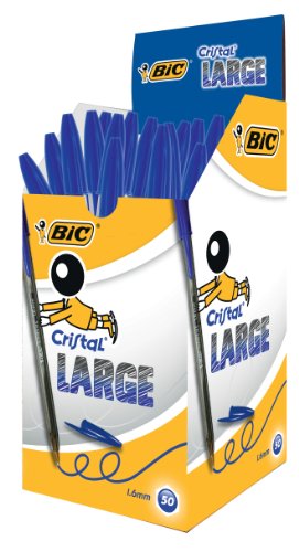 BIC Penne Blu a Sfera, Cristal Large, Punta Media, 1.6 mm, Confezione 50 Penne, Fornitura per Cancelleria Scuola e Ufficio