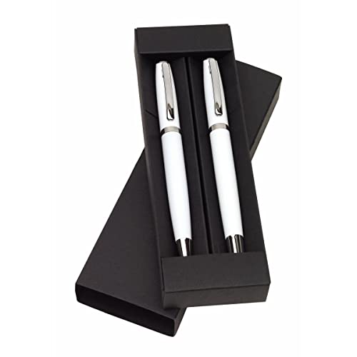 Set di penne a sfera con effetto polare, con incisione - colore bianco - penna a sfera e penna a sfera nera - con custodia regalo