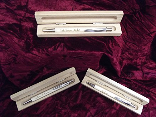Set di 3 penne a sfera in legno con incisione a scelta e ognuna con custodia
