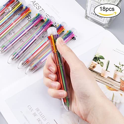 Penne a Sfera Multicolore, 18 Pezzi 8-in-1 Retrattile Penne a Sfera Palla Multicolore, 8 Colori Barile Penna a Sfera per Ufficio Scuola Forniture Regalo di Studenti Bambini