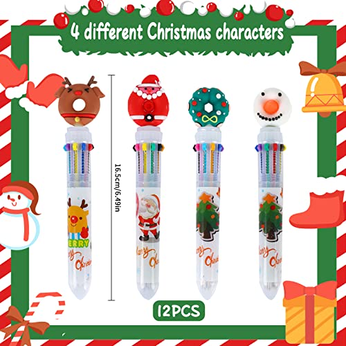 Penne a Sfera Natale 12 Pezzi Penne Multicolore Albero di Natale Pupazzo di Neve Babbo Natale Renna Novità Pennarello Retrattili 10 in 1 per Studenti Ufficio Scolastico Regalo di Natalizie Cancelleria
