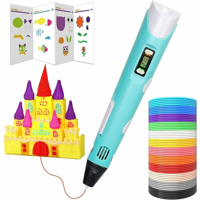 Penna 3D: la confezione contiene 1 penna per stampante 3D. 12 colori di filamento di stampa 3D PLA da 1,75 mm, ogni colore è 3 m. C'è anche un alimentatore, una guida passo-passo e una guida per gli stencil. Regalo ideale: questo set di penne per la stampa 3D è un regalo creativo per i bambini. Può aiutare a comprendere il pensiero, illuminare l'intelligenza, stimolare la creatività e migliorare l'abilità pratica. Divertiti con la tua famiglia. Alta qualità: la penna per stampante 3D e i filamenti per stampante 3D PLA da 1,75 mm sono di altissima qualità. I filamenti sono confezionati sottovuoto. Durante l'uso non appariranno bolle. Facile da usare: leggere il manuale dell'utente prima dell'uso. Dopo aver finito di disegnare, tieni premuto il pulsante di retromarcia per rimuovere il filamento.