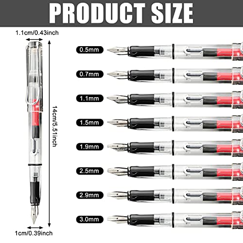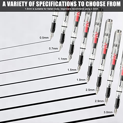 Questo set di penne stilografiche contiene 8 penne calligrafiche con diverse dimensioni (0,5 mm, 0,7 mm, 1,1 mm, 1,5 mm, 1,9 mm, 2,5 mm, 2,9 mm e 3,0 mm), per soddisfare tutte le vostre esigenze di scrittura e disegno. Questo set di penne stilografiche contiene 8 penne stilografiche con 8 diverse dimensioni, adatto per caligrafia. Set di matite per una Varietà di caratteri.