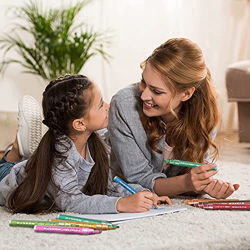 【Facile da controllare e utilizzare】 - Per prima cosa agita bene il pennarello per mescolare l'inchiostro con la punta. Quindi rimuovere il cappuccio e premere delicatamente la punta sulla superficie alcune volte per pompare l'inchiostro fino a quando non inizia a fluire che automaticamente per creare un bellissimo effetto bicolore. Per ottenere i migliori risultati, ricoprire i pennarelli immediatamente dopo l'uso e conservarli orizzontalmente.