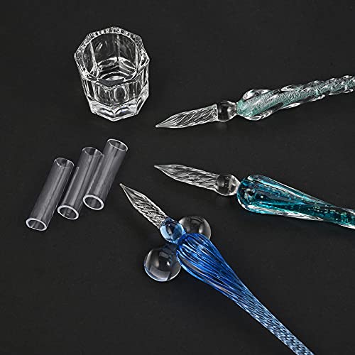 Set di 19 penne in vetro per calligrafia, con penna in vetro e penne in vetro, con inchiostro colorato, porta penna per firma e scritta, regalo decorativo