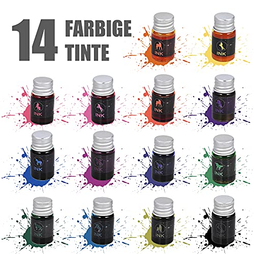 Il set di penne stilografiche include: materiali di alta qualità e un'esperienza di scrittura fluida. Godetevi i complimenti della vostra bella penna calligrafica. 14 bottiglie di inchiostro, 3 penne in vetro, 1 portapenne in vetro, 1 portapenne. È ideale per biglietti di auguri, poster, firme, calligrafia, pittura, decorazioni e regali.