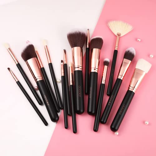 Pennelli Make up Docolor per il Trucco Set di 15 Spazzole Viso Volto Ombretti con Soffici Fibre Sintetiche con borsa,oro rosa