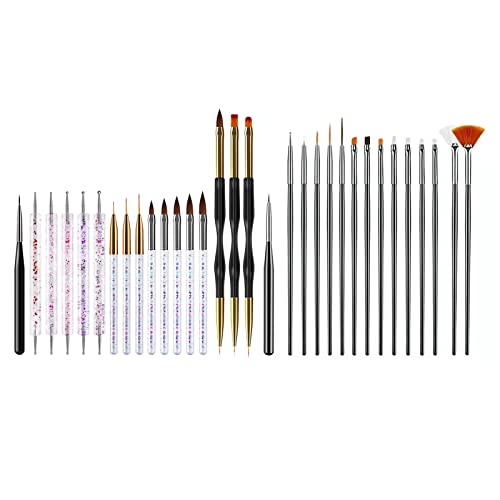 Set di pennelli professionali: ci sono 31 pennelli, con dimensioni e tipi diversi, possono migliorare l'efficienza della manicure e non mescoleranno i colori anche se è necessario eseguire una panoramica di più motivi.