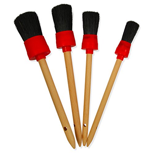 Set di 4 pennelli per la pulizia dei cerchi in lega, pennelli per detailing e valeting, kit di pennelli con setole robuste e manici in legno, da TS3 Auto