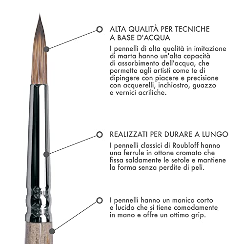 Set Di Pennelli Roubloff Professional Mongoose Imitation | 5 Pennelli Sintetici Rotondi Nelle Taglie 0 1 2 3 5 | Utilizzare Con Acrilico, Acquerello, Guazzo E Colori Ad Olio