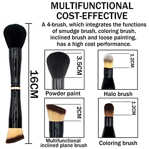 Pennelli per Trucco 4-in-1, Pennello da Trucco Multifunzionali, Set Pennelli Make up 4-in-1, Pennello da Trucco Portatile, Pennelli per Sfumare, Colorare, Smussare e per Cipria in Polvere