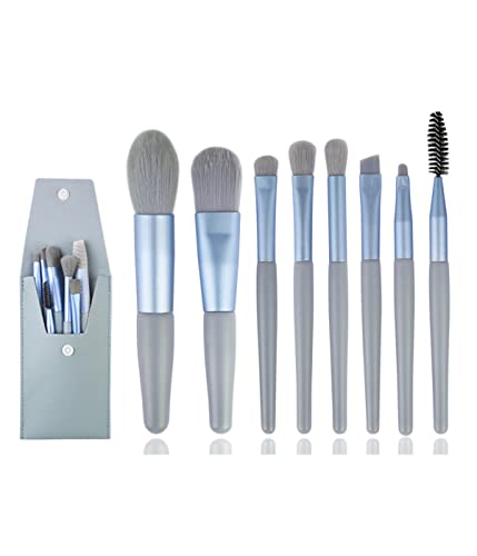 8 Pennelli Da Trucco Professionali Per Fondotinta, Fard, Ombretto e Mascara, Con Custodia Blu Per Il Trasporto