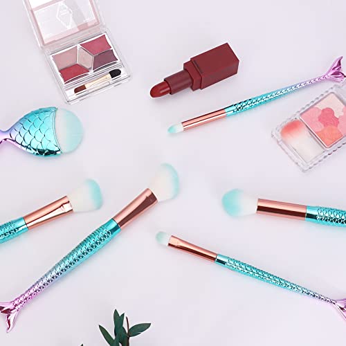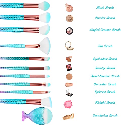 Pennelli da Trucco, shirylzee Make up Pennelli 11 Pezzi Set di Pennelli per trucco Professionale Mermaid Sintetico Kabuki Fondazione Eyeliner Blush Sopracciglia Correttore Spazzole Kit