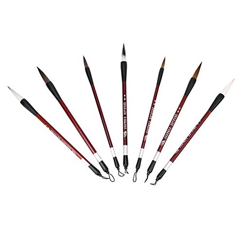Pennello per calligrafia, 7 pezzi Pennello per donnola Penna con manico in legno Penna tradizionale cinese con confezione regalo Miglior regalo per calligrafia e disegnoPenne calligrafiche