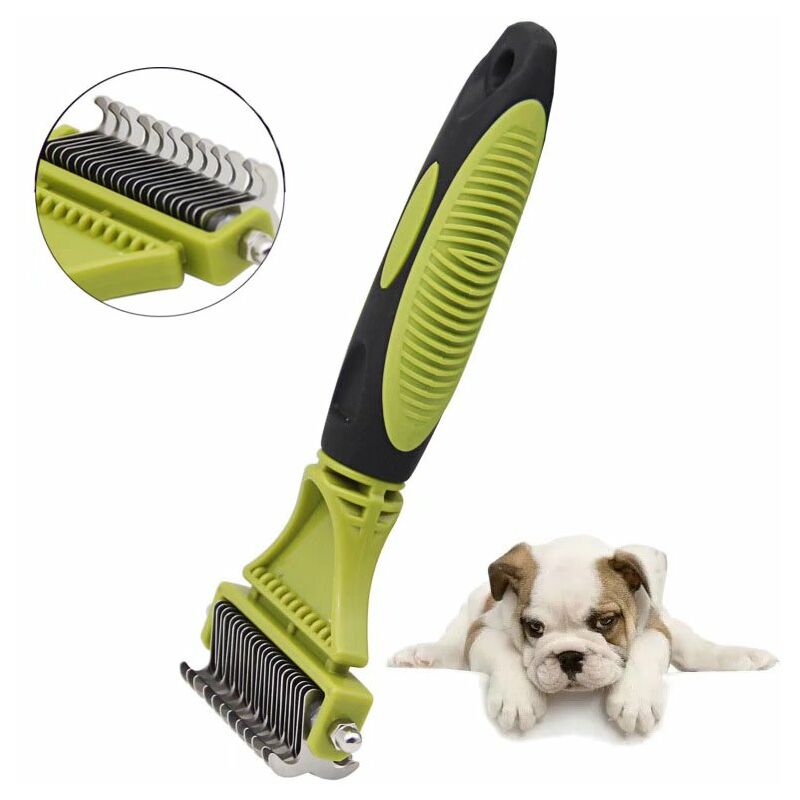 La struttura duratura durerà a lungo. [Riduci la perdita dei capelli] Il miglior kit di utensili di chat per gatti e cani. Questo pettine 2 in 1 può aumentare la circolazione del sangue, ridurre la perdita dei capelli e rendere la pelliccia di animali morbidi e lucenti. È particolarmente ideale per cambiare stagione, con un tasso di eliminazione fino al
