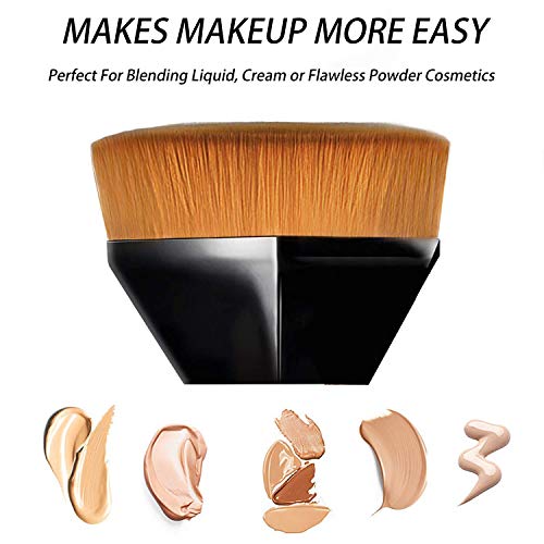 Pennello per fondotinta Kabuki con parte superiore piatta per cipria e cipria liquida, crema o cosmetici in polvere impeccabile, con custodia protettiva (nero)