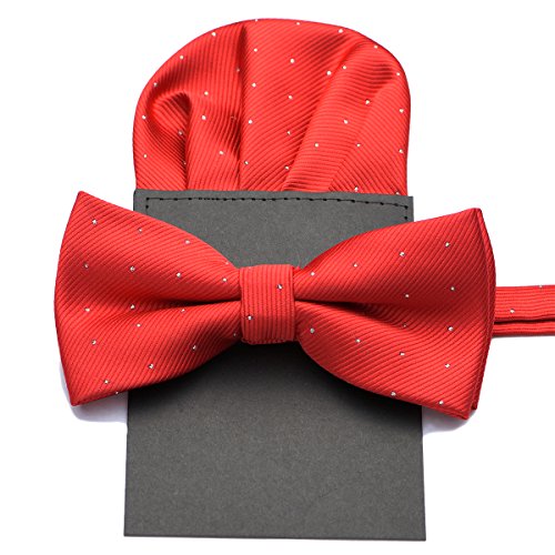 PenSee - Elegante set con papillon preannodato e porta fazzoletto in seta, da uomo, motivo a pois, colori vari
