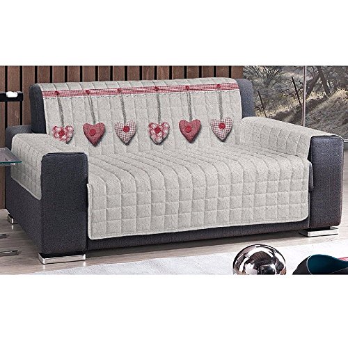 PENSIERI DELICATI Copridivano Salvadivano Trapuntato Stampato Cuori Shabby Alta qualità + Misure Rosso 3 Posti