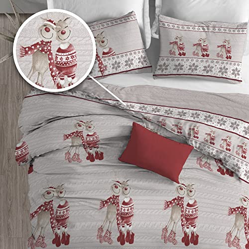 PENSIERI DELICATI Parure Copripiumino Matrimoniale 100% Cotone, Completo di Sacco 250x200cm e 2 Federe 52x82cm, Made in Italy, Copripiumino Lavabile In Lavatrice A 40°, Fantasia Renna Rosso