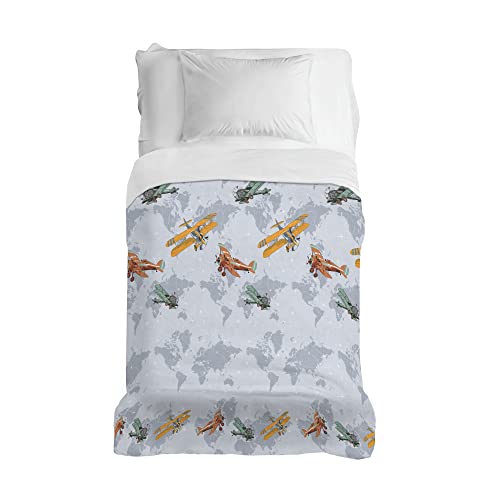 PENSIERI DELICATI Telo Copriletto 170 x 280 cm, Telo Singolo 100% Cotone Pique, Ideale Come Telo Arredo, Coperta Salva Letto 1 Piazza, Fantasia Aerei Grigi, 100% Made in Italy