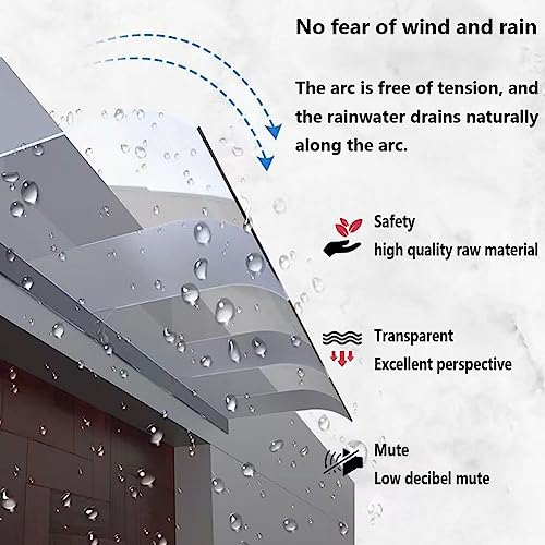 [Pensilina da Esterno]realizzato con lastre di policarbonato di 3,5 mm di spessore, migliore del cartone cavo e del vetro, resistente agli urti e al carico (100 kg), ignifugo, robusto, resistente alle alte temperature, insonorizzato, autopulente dall'acqua piovana, ecc. Rendi la tua decorazione esterna leggera e forte!
