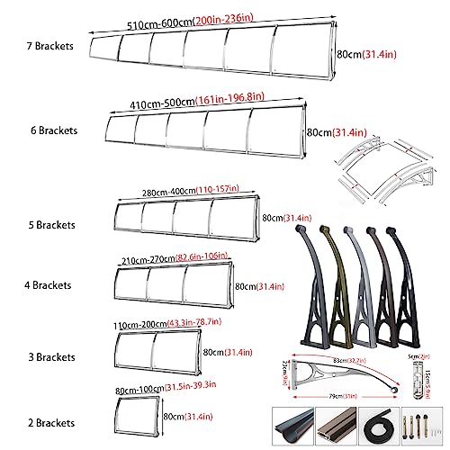 1. Materiali: Policarbonato (PC) con protezione UV. Offre protezione da pioggia, grandine e raggi UV, protegge l'ingresso da pioggia e vento ed evita gradini scivolosi;
