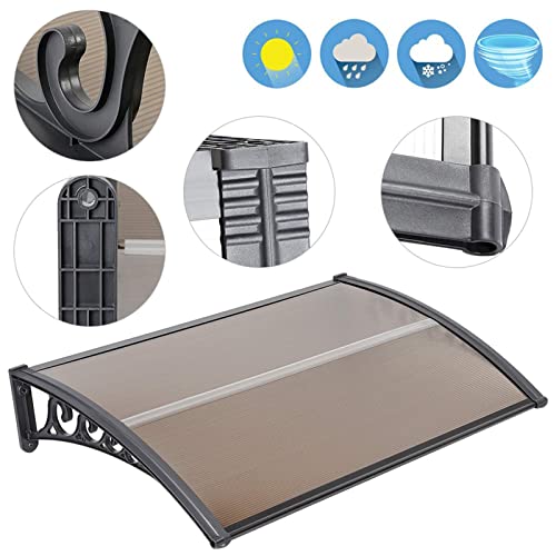 Pensilina Tettoia per Porta, Pensilina Copriporta in Policarbonato, Marrone, Disponibili in Diverse Misure (80 x 120 CM)