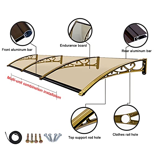 * Materiale durevole: il tettuccio per porte e finestre è realizzato in policarbonato PC ad alta purezza, staffa in lega di alluminio e striscia di alluminio. Elevata resistenza, resistenza agli urti, nessuna deformazione o ruggine e forte resistenza al vento, il nostro baldacchino per porta è adatto per aree ventose.