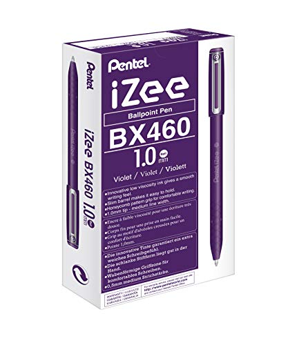 Pentel BX460-V IZee - Penna a sfera con cappuccio e clip in metallo, tratto da 0,5 mm, confezione da 12, colore: viola