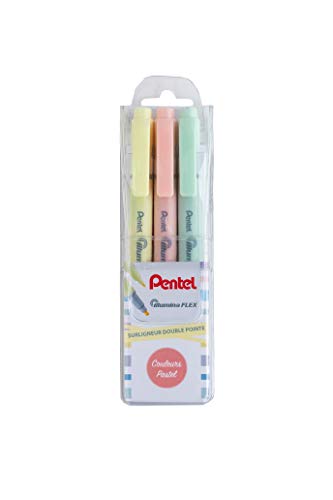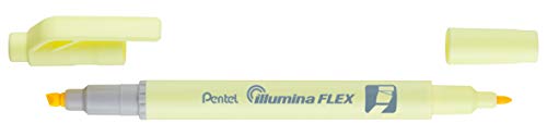 Pentel Illumina Flex SLW11P - Confezione da 3 evidenziatori bipunta pastello, giallo, arancione e verde chiaro