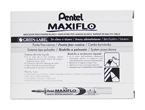 Pentel MWL5S Maxiflo Marcatore per lavagne bianche punta 4.0 mm 12 pezzi, nero