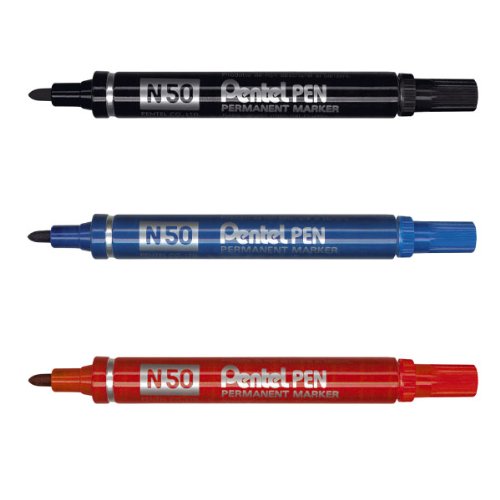 Pentel, pennarello indelebile a sfera N50, colore nero Blister de 3 Black / Blue / Red (Pack of 3)
