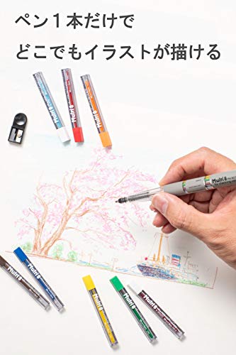 Questo set contiene un supporto Pentel Multi 8, otto confezioni di ricariche di piombo (Diazo non copia, PPC non copia, rosso, blu, marrone, arancione, giallo e verde) e un temperamatite.