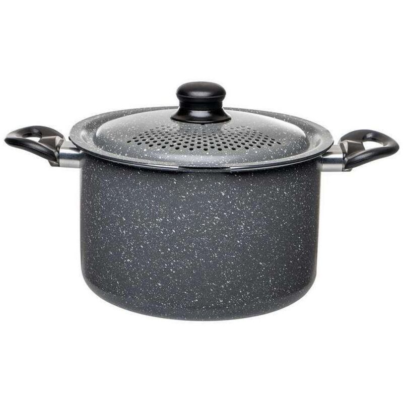 Pentola cuoci scola con manici blocca coperchio in alluminio pressofuso antiaderente con effetto granito 5,5 litri