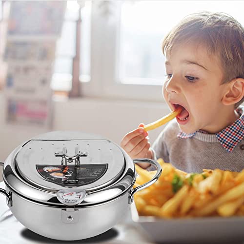 Pentola per friggere in stile giapponese Mini pentola in acciaio inossidabile con termometro Fornello a induzione Utensile da cucina compatibile per fornelli a gas, fornelli a induzione(S-20cm)