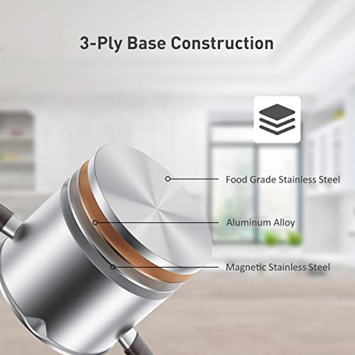 L'acciaio inossidabile lucidato con rivestimento - privo di PFAS e PFOA, garantisce una cottura sana. Segni di misurazione all'interno della pentola per una misurazione precisa del liquido. Il coperchio in vetro temperato rende comodo vedere lo stato di cottura e limita gli schizzi sul fornello. Il beccuccio con il coperchio del colino aiuta a trasferire i liquidi e filtrare facilmente le tagliatelle.