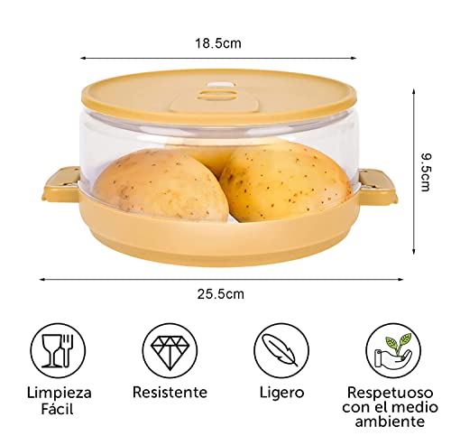 Facile da usare: prepara una moltitudine di ricette di patate in un solo passaggio. Aggiungere le patate nella ciotola e cuocerle nel microonde. Risparmia tempo con il miglior gusto: quando si bollire o cuocere le patate con altri sistemi richiede molto tempo e perdono il loro sapore originale. Grazie a questa pentola, puoi gustare deliziose e gustose patate in 5-8 minuti. Metti le patate nel contenitore, accendi il microonde, aspetta e sono pronte. Non c'è bisogno di aggiungere acqua o pungere le patate con una forchetta.