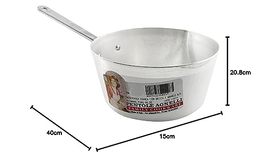 Pentole Agnelli Linea Family Cooking Alluminio Casseruola Conica con Un Manico e Becco, Argento, 22 cm