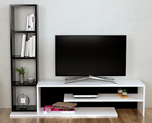 Peony - Mobile Basso per TV, con scaffali, Design Moderno, Colore: Bianco/Nero