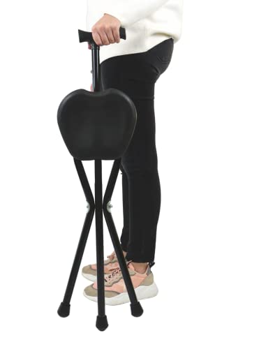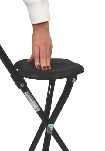 PEPE - Bastone per Anziani con Seduta (Altezza 87 cm, Non Regolabile), con Sgabello Pieghevole, da Passeggio con Sedile, 3 Piedi, Alluminio Seggiolino Nero