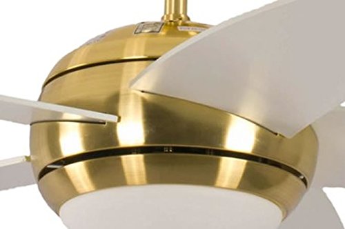 Pepeo Melton Ventilatore da Soffitto 13422010132_v2 con Telecomando Incluso, Rivestimento di Color Ottone, Pale Bianco, 132 cm