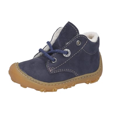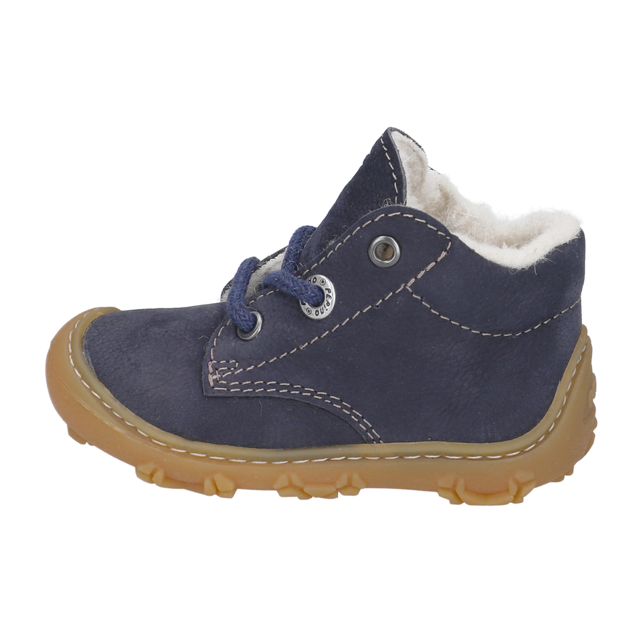 RICOSTA produce scarpe per bambini da oltre 40 anni. Pepino Nel 1978, l'azienda ha lanciato il marchio per i bambini più piccoli. L'idea alla base: I bambini piccoli in particolare hanno bisogno di scarpe che si adattino in modo ottimale ai loro piedi in via di sviluppo. Le scarpe Pepino proteggono i piedi dei bambini piccoli durante la delicata fase di crescita. Le prime scarpe Pepino sono prodotte con grande cura e attenzione ai dettagli. I requisiti richiesti ai materiali sono estremamente elevati. RICOSTA utilizza solo pelle e tessuti delicati per la pelle e ne garantisce la durata. PEPINO Le robuste scarpe stringate COLIN hanno una fodera interna molto morbida e una suola flessibile in gomma naturale di alta qualità. La soletta calda assicura una calzata confortevole e la pelle terracare® conciata ecologicamente è idrorepellente. Un leggero acquazzone non è quindi un problema per i piedi. I tre occhielli a destra e a sinistra sono utilizzati per l'allacciatura, che è molto robusta e resistente. Queste scarpe invernali sono adatte per l'uso quotidiano all'asilo o a scuola, ma anche per il tempo libero: un must per la scarpiera dei piccoli avventurieri. Dettagli prodotto: Tomaia: pelle;