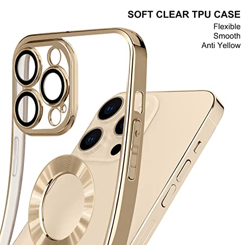 Pepmune Cover per iPhone 13 Pro Custodia Trasparente Placcatura Disegno Copri Fotocamera Sottile Silicone Bumper Case Antiurto Resistente Anti Ingiallimento Crystal Clear Cover per iPhone 13 Pro Oro