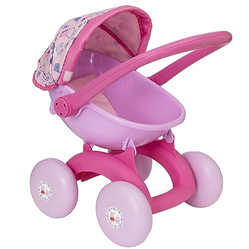 CARATTERISTICHE - Il tessuto fantasia Peppa Pig è un'aggiunta adorabile e il cappuccio regolabile proteggerà la tua bambola da troppo sole. Questa carrozzina per principianti perfetta per il tuo bambino è dotata di biancheria da letto e grembiule in tessuto coordinati. Con un'altezza del manico regolabile di 40-47 cm è perfetto per i bambini dai 18 mesi in su.