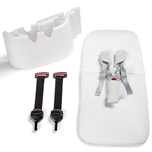 Comprende: cinturini a tre punti dotati di spallacci e agganci per il trasporto in auto, materassino auto, polistirolo di protezione.
