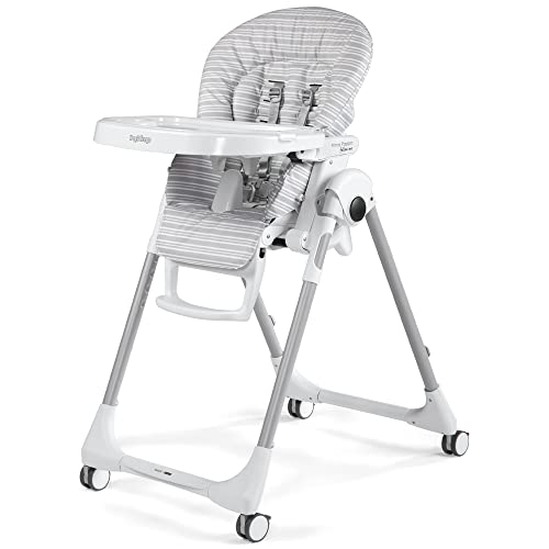 Peg Perego Prima Pappa Follow Me Seggiolone Pappa Neonati Reclinabile, Funzione Sdraietta, 4 ruote, Pieghevole e Ultracompatto, per Bambini da 0 a 3 Anni (0-15 kg), Linear Grey