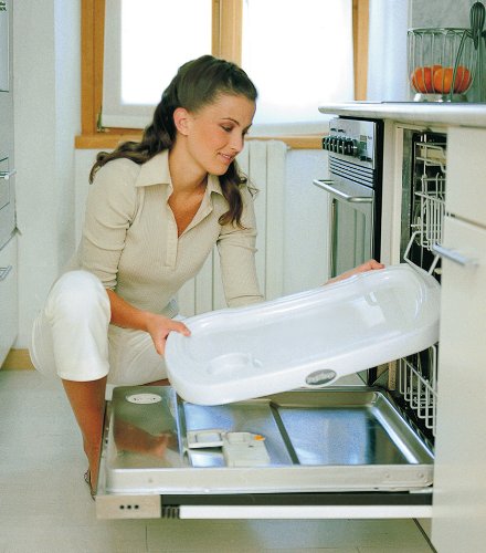 Doppio vassoio removibile con vano porta bicchiere o biberon, facilmente lavabile in lavastoviglie
